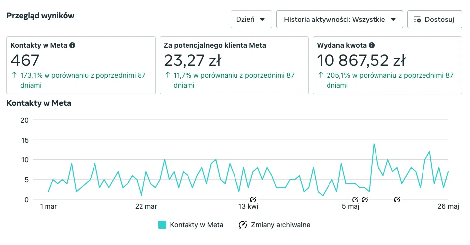 467 kontaktów w 3 miesiące - bez landing page'a, z prostą strategią i dobrym targetowaniem