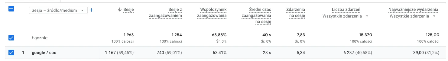 Z samego Google Adsa w ciągu 3 miesięcy mieliśmy 39 konwersji. I nie były to konwersje przejścia na podstronę kontaktu, a konkretne – kliknięcie w maila, telefon lub wysłanie formularza kontaktowego.